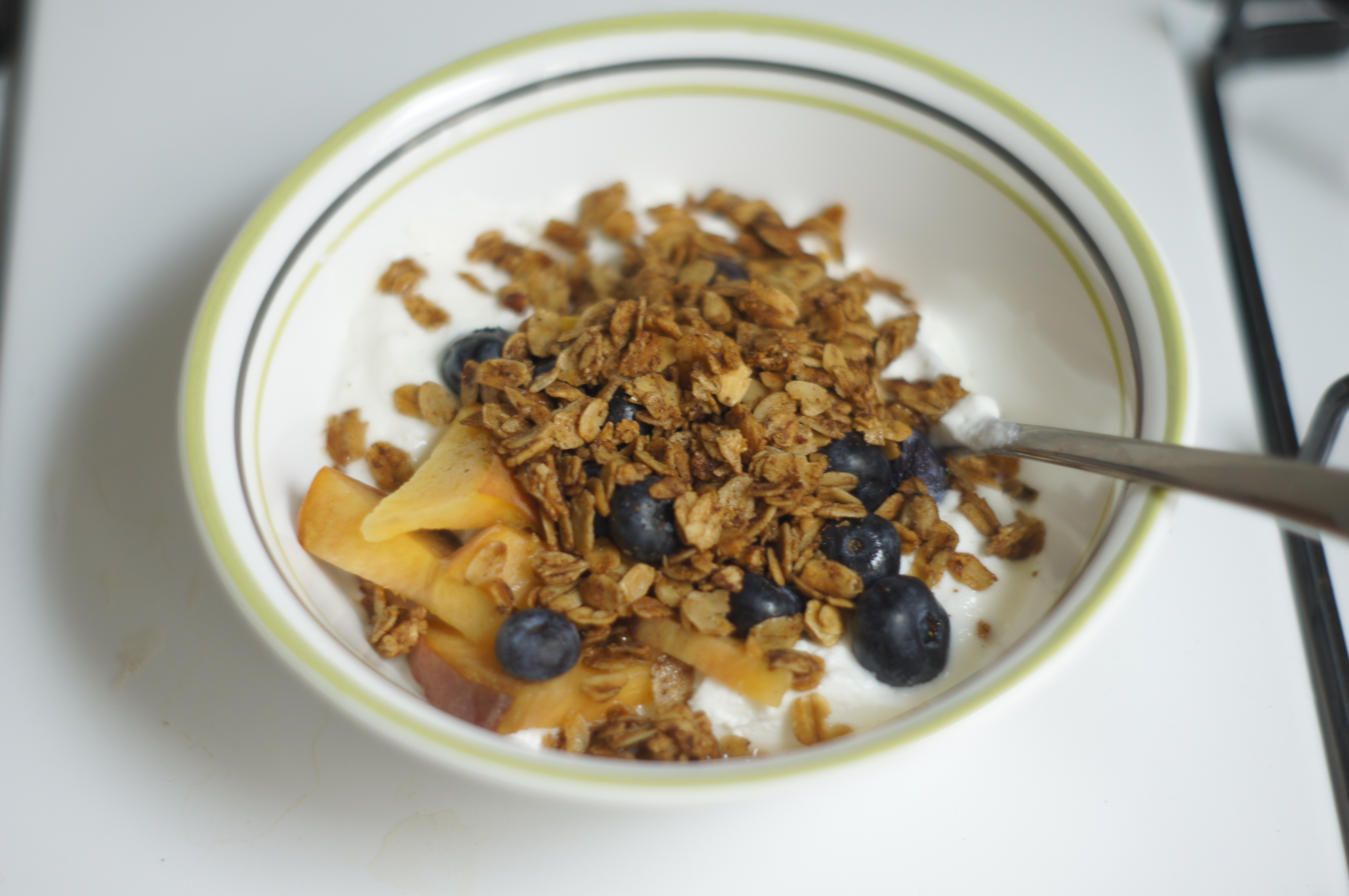 The sweetness of the granola goes well on its own, but also works insanely well as a topping for greek yogurt with fruit. Those Starbucks parfaits got nothin’ on this.
