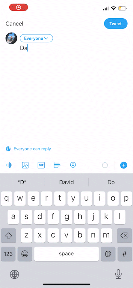 The next time you need to input a long string of text, just start typing your phrase (“davepass” in this case), and your desired number will pop up right above your keyboard. In this context, I just used Twitter to demonstrate the shortcut in action.